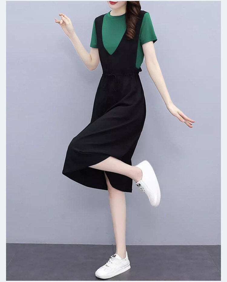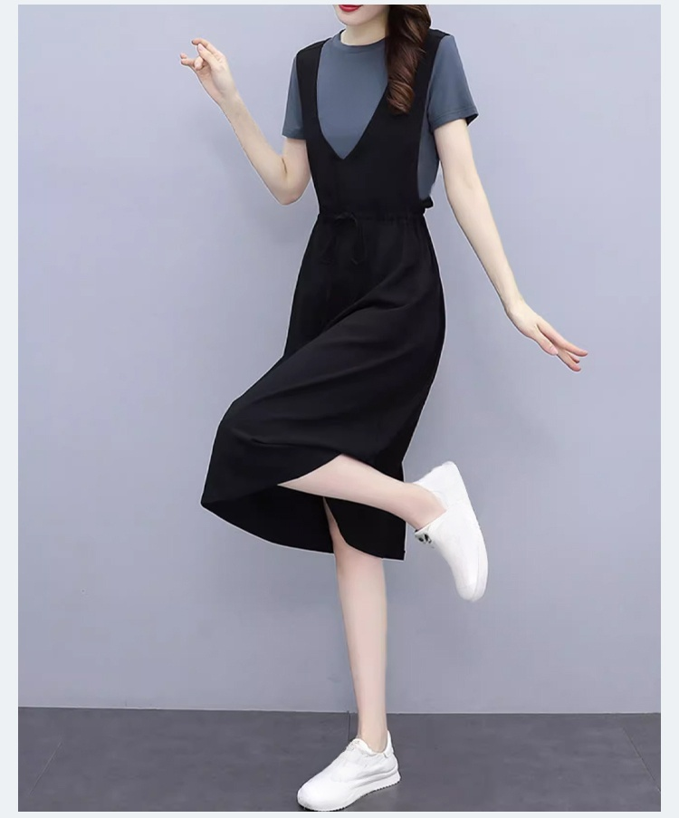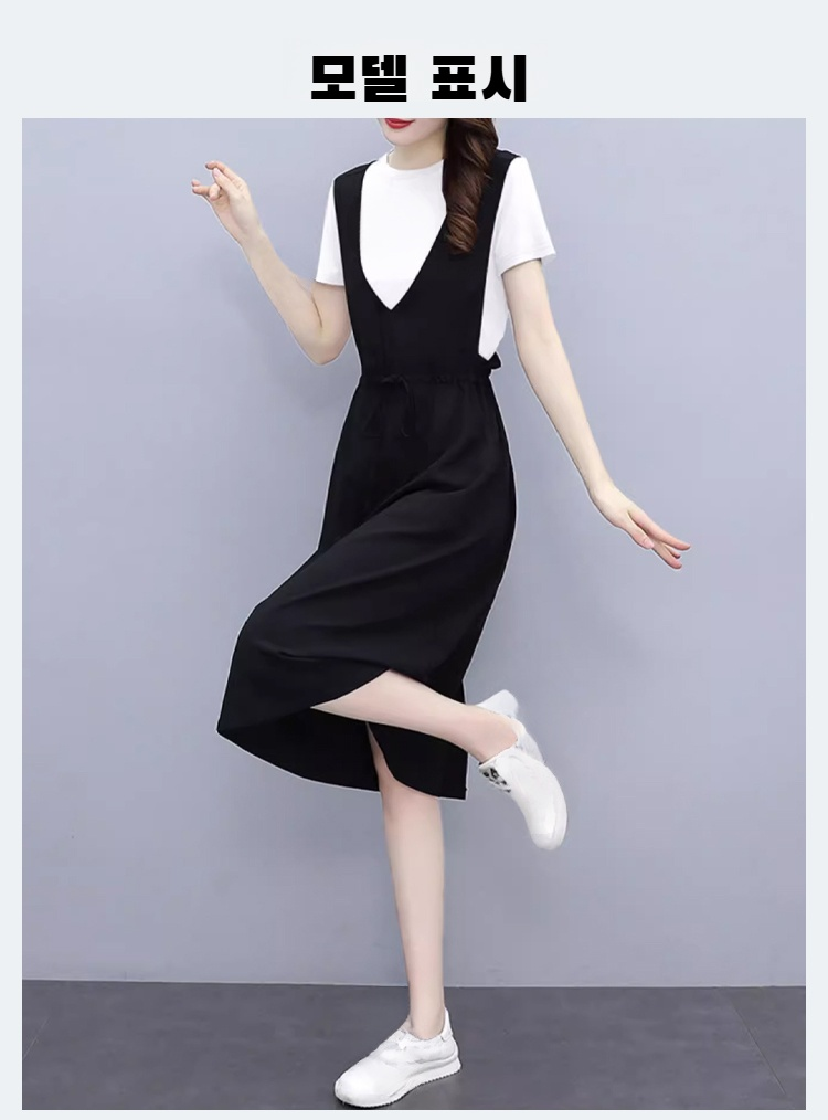 루즈핏 날씬해 보이는 유럽역 여름 멜빵 원피스 미디 캐주얼 원피스 가짜 투피스 멜빵 스커트