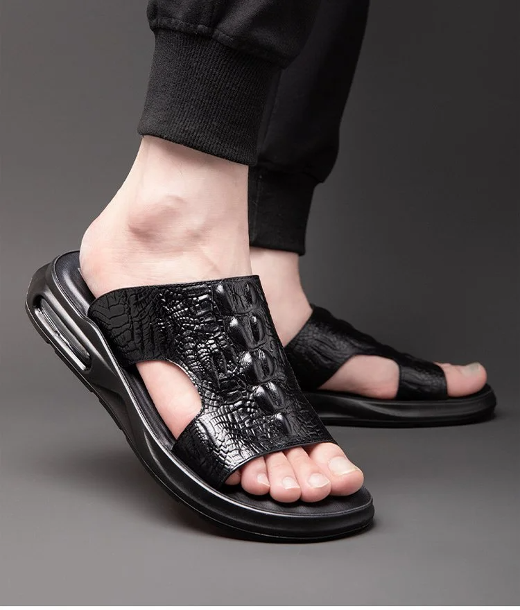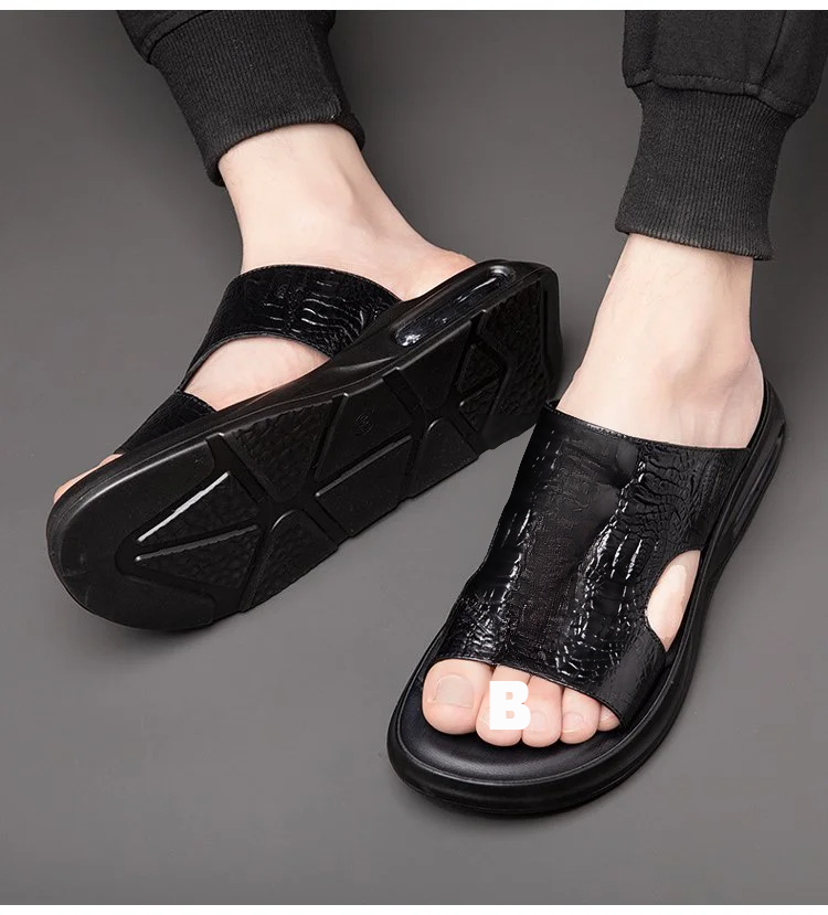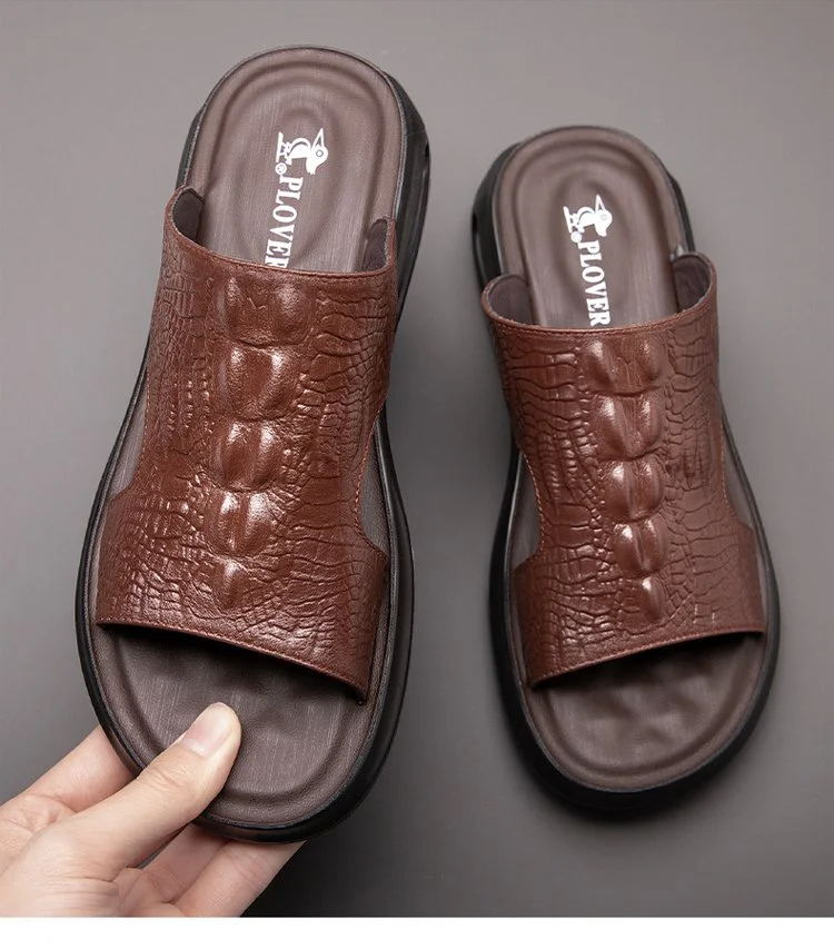 남자 여름 아웃도어 샌들 일자 샌들 소가죽 투인원 아웃도어 슬리퍼 남자 쿠션 비치 샌들