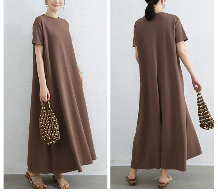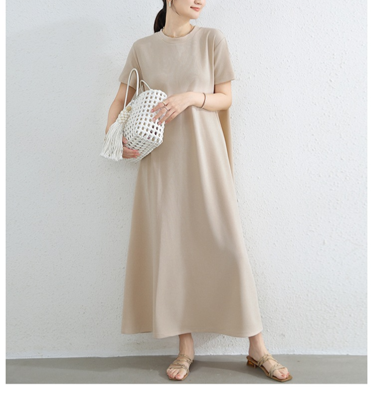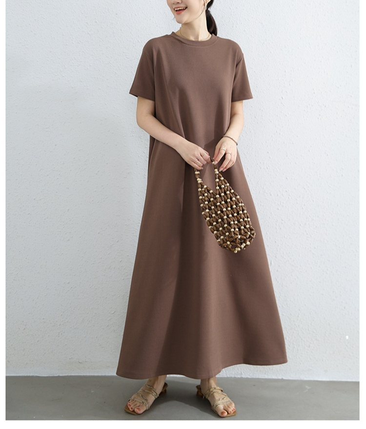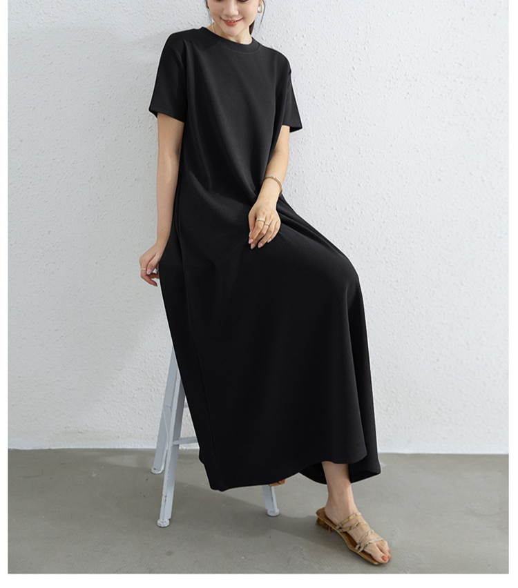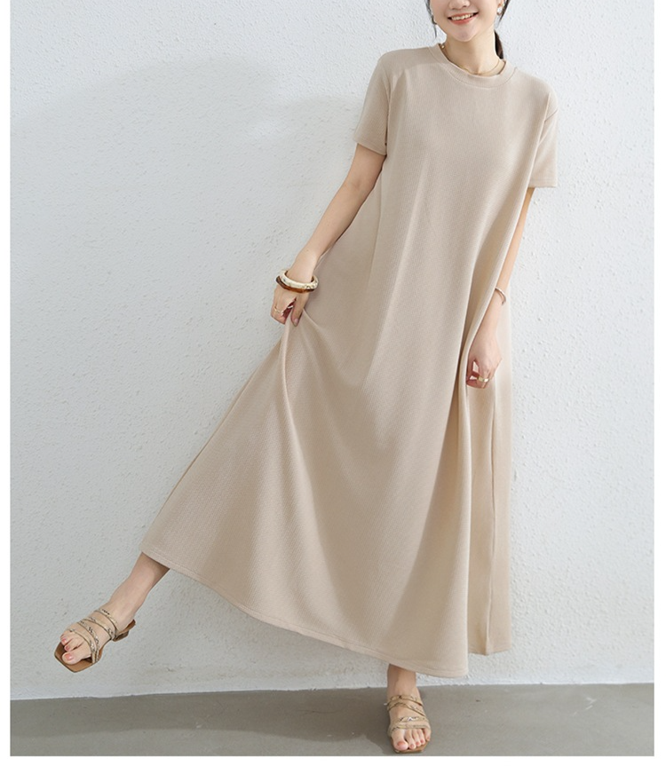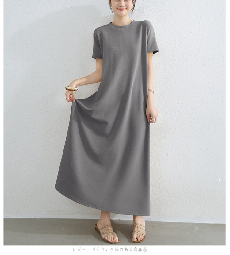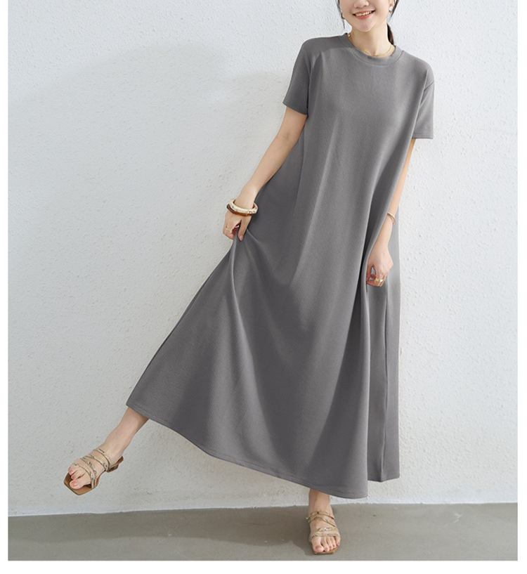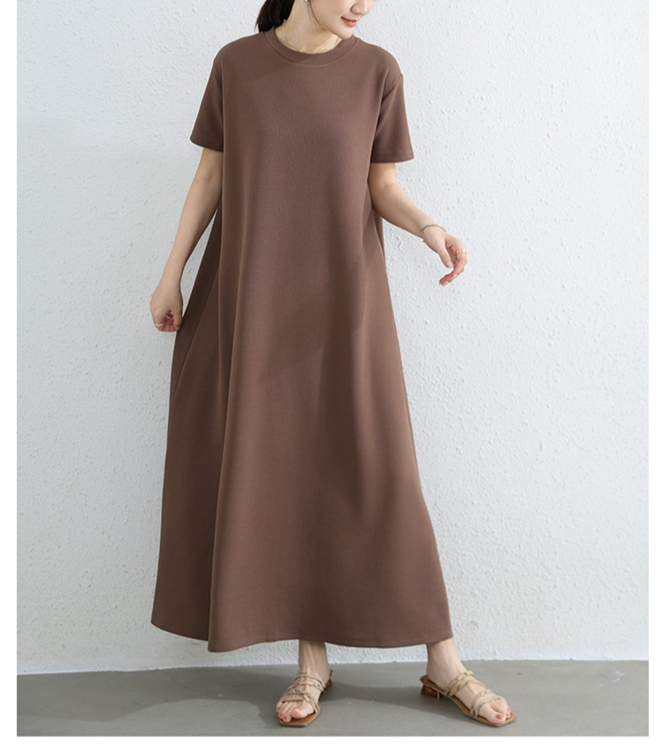 여성 루즈핏 라드 빅사이즈 패션 반팔 라운드 원피스 여름 A라인 롱스커트