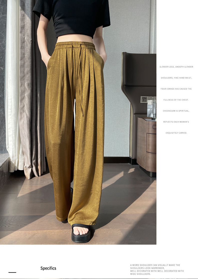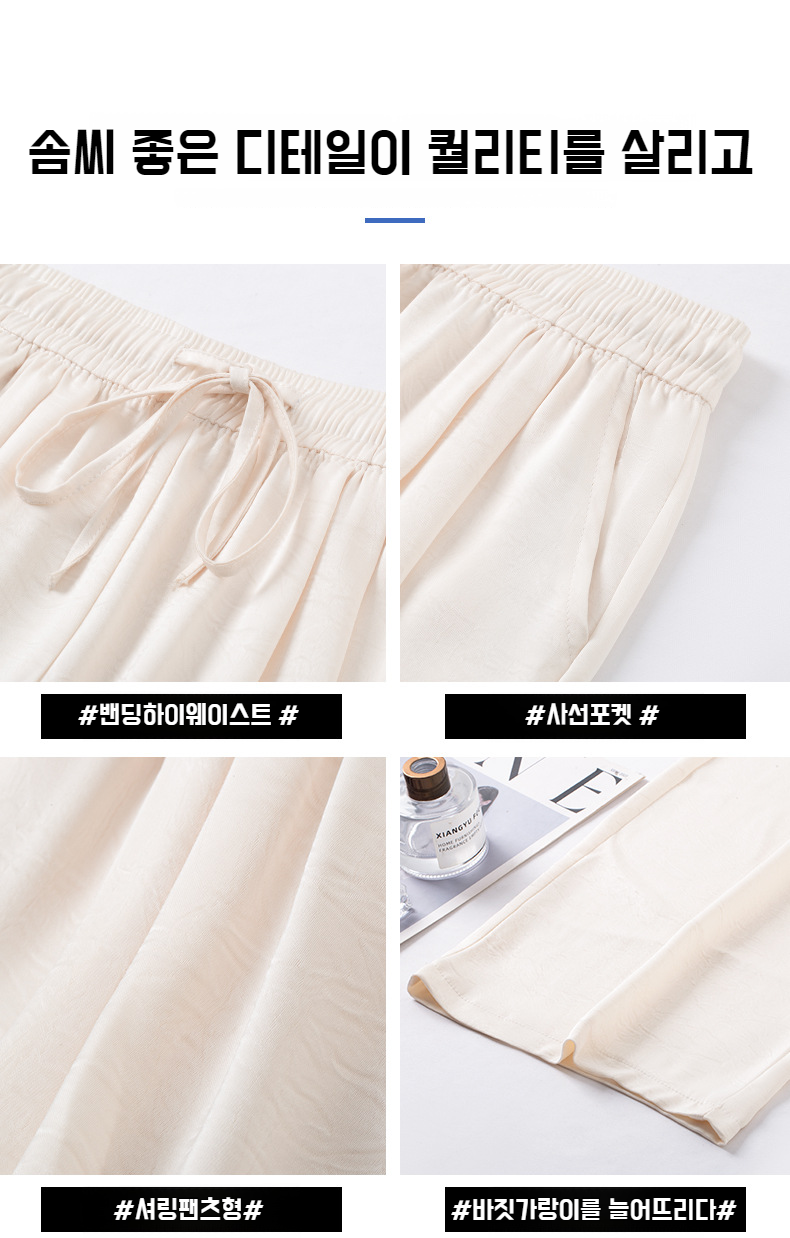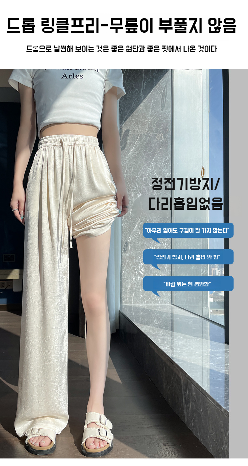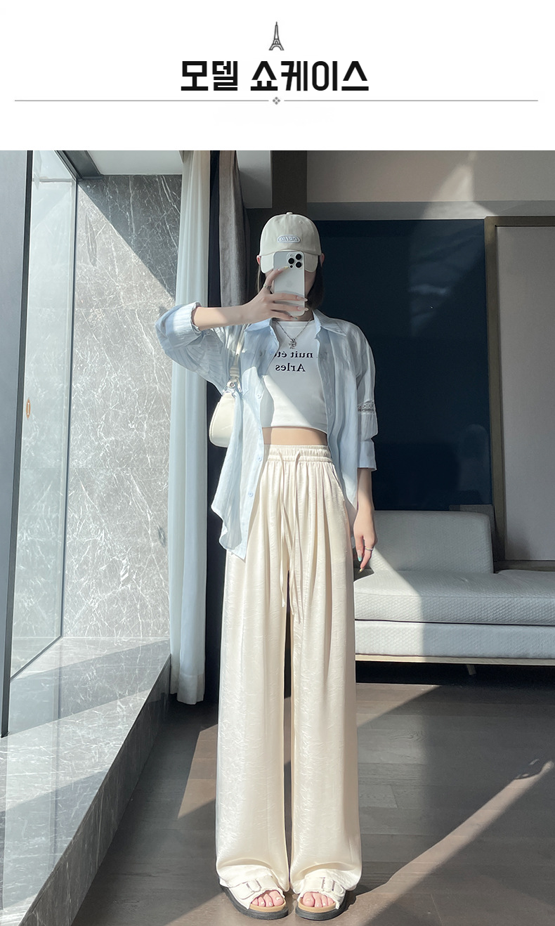 산뜻한 통기성 와이드 팬츠 슬림핏 아이스 와이드 팬츠 봄여름 하이웨스트 얇은 캐주얼 팬츠 여 드롭 자카드 와이드 팬츠
