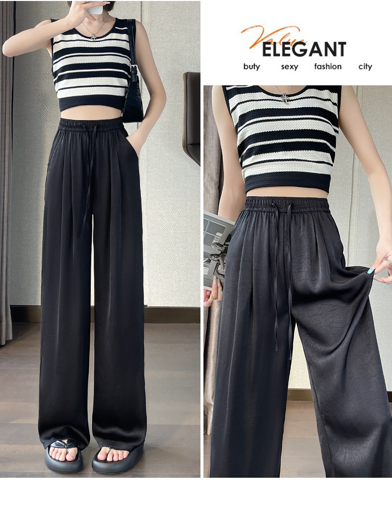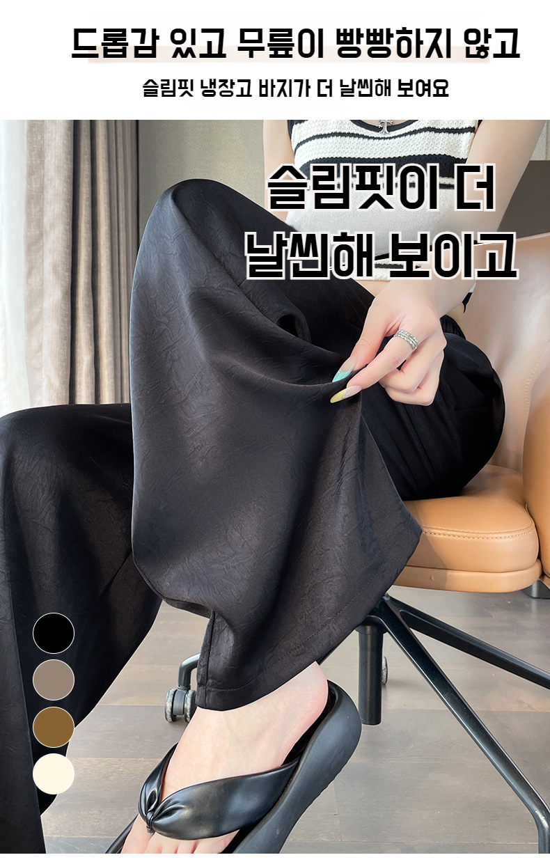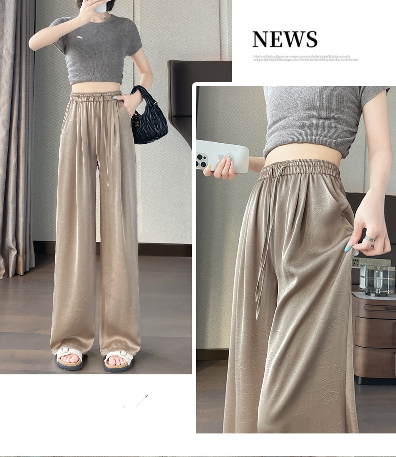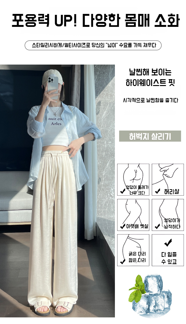 산뜻한 통기성 와이드 팬츠 슬림핏 아이스 와이드 팬츠 봄여름 하이웨스트 얇은 캐주얼 팬츠 여 드롭 자카드 와이드 팬츠